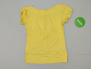 Żółta bluzka damska Classic Wear - Rozmiar: S (na metce) - Krój: zapinana na guziki z przodu, dekolt w kształcie litery V - Rękawy: krótkie - Materiał: cienka, przewiewna dzianina o drobnej, siate...