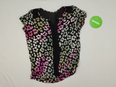 Bluzka damska w panterkę - Fason: peplum z delikatnie rozkloszowaną falbaną u dołu, podkreślona talia - Rękaw: krótki, lekko opadający - Dekolt: okrągły; z tyłu niewielkie wycięcie łezka zapinane ...