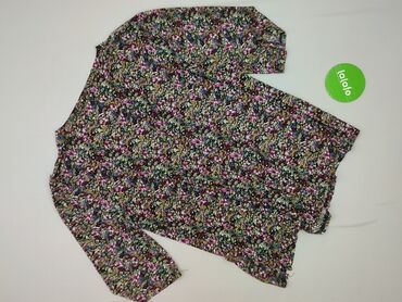 Bluzka damska z żakardowej tkaniny, wzór kwiatowy - Krój: lekko luźny, długość do bioder - Rękawy: długie - Dekolt: w serek z kołnierzykiem - Wzór: bogaty, roślinno‑kwiatowy w odcieniach niebieski...