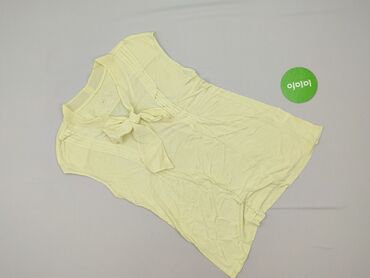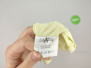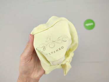 Żółta bluzka damska z lekkiego, zwiewnego materiału - Krój: luźny, asymetryczny dół z nakładającymi się panelami z przodu - Dekolt: głęboki w kształcie litery V - Rękawy: 3/4, lekko rozszerzane - ...