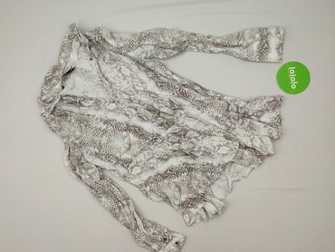 Bluzka damska z długimi rękawami, ozdobiona wzorem w tygrysie paski w odcieniach beżu, czerni i bieli. Posiada dekolt w kształcie litery V, z subtelnym wiązaniem z przodu, co nadaje jej swobodny, a...