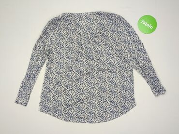 Bluzka damska H&M, rozmiar L - Fason: luźny, lekko taliowany, z delikatnym dekoltem w kształcie V - Rękawy: długie - Wzór: drobne kwiaty i liście w odcieniach granatu, zieleni i szarości na białym...