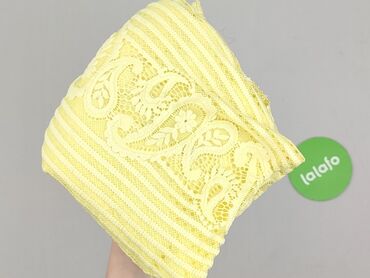 Bluzka damska bez rękawów w kolorze pastelowej żółci. - Krój: luźny, lekko taliowany, dekolt w kształcie litery V - Rękawy: krótkie/kapki - Ozdoby: koronkowo‑haftowane wstawki na ramionach - Mater...