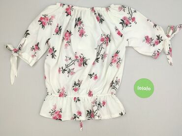 Bluzka hiszpanka w kwiaty – rozmiar M - Krój: hiszpanka z odkrytymi ramionami; elastyczna gumka w dekolcie oraz w dolnej krawędzi, umożliwia noszenie na lub poniżej ramion. - Rękawy: 3/4 z gumką i...