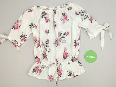 Bluzka damska M&W Collection, rozmiar S. - Krój hiszpanka – elastyczna gumka w dekolcie pozwala nosić odkryte ramiona - Długie rękawy z lekkim marszczeniem - Zwiewny, cienki materiał z delikatną f...