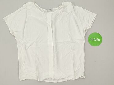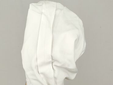 Bluzka damska z lekkiej, półprzezroczystej dzianiny w kolorze białym. - Fason: luźny, z opadającymi krótkimi rękawami i miękko układającym się, szerokim dekoltem typu wodospad. - Materiał: widoczn...