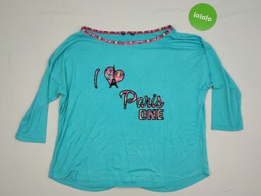 Bluzka damska BRAVOO Collection, rozmiar L. - Krój oversize z lekko opadającym rękawkiem, okrągły dekolt - Wzór w poziome paski w odcieniach ecru/krem i bieli - Przód z nadrukiem w stylistyce „Par...Stan: