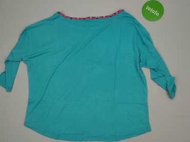 Bluzka damska w kolorze turkusowym - Krój oversize z szerokimi, krótkimi rękawami - Dekolt w kształcie litery V - Asymetryczne zapięcie z przodu na rząd drobnych guzików w kolorze drewna - Dół z p...