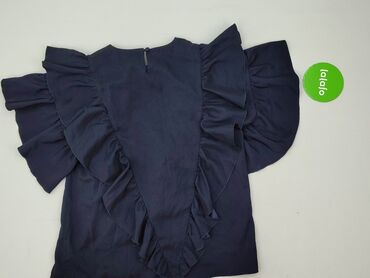 Bluzka hiszpanka z falbaną, granatowa. - Krój: odkryte ramiona (off-shoulder) z szeroką, podwójną falbaną wokół dekoltu - Rozmiar z metki: M - Materiał: 65% bawełna, 35% poliester – miękki, lekko ...