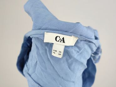 Bluzka damska C&A - Kolor: jasny denim/niebieski - Fason: luźny, z doszytą falbaną na dole (peplum) - Rękawy: długie, z delikatnymi marszczeniami i mankietem na gumce - Dekolt: okrągły - Zapięcie:...