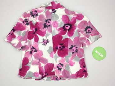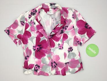 Koszula damska z krótkim rękawem – kwiatowy wzór - Krój: luźny, koszulowy, z kołnierzykiem i zapięciem na guziki z przodu - Rękaw: krótki, szeroki - Rozmiar: L (metka widoczna na zdjęciu) - Wzór/k...
