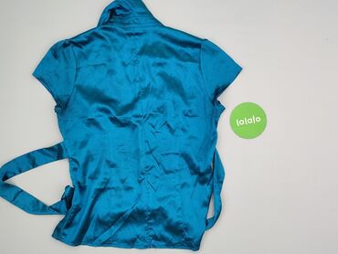 Bluzka damska Orsay - Model: lekka, półtransparentna bluzka z krótkim, falującym rękawem - Kolor: morski/turkus ze złoto‑zielonymi, delikatnie połyskującymi paseczkami - Dekolt: stójka z długą, de...