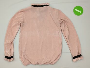 Bladoróżowa bluzka damska z połyskiem - Krój luźny, tunikowy - Materiał o satynowym wykończeniu – gładki, miękki, lekko połyskujący - Długi, bufowany rękaw z gumką przy mankiecie - Dekolt z rozcię...