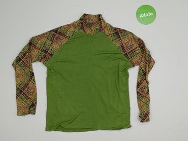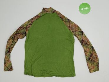 Bluzka damska z długim rękawem, rozmiar L. - Luźny fason typu nietoperz z szerokimi rękawami. - Góra oraz rękawy w czerni, przód i tył z efektownym, artystycznym nadrukiem w odcieniach zieleni, żó...