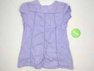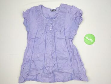 Bluzka damska w kolorze lawendowym - Krój: luźny, oversize; lekko opuszczona linia ramion - Dekolt: w kształcie litery V z delikatną zakładką z przodu - Rękawy: krótkie, szerokie - Dół: zaokrąglon...