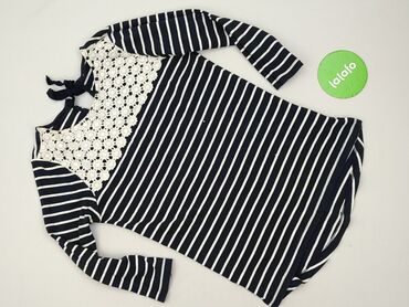 Damska bluzka w paski z długim rękawem. - Kolor: granatowy w beżowe, poziome paski - Krój: prosty, lekko dopasowany - Dekolt: łódka - Zapięcie/dekor: dwa ozdobne guziki na lewym ramieniu - Rękawy:...
