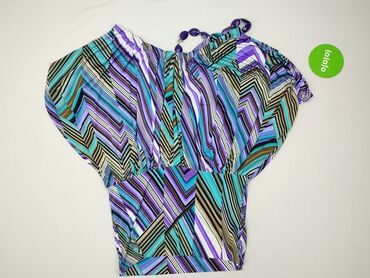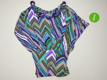 Bluzka damska z lekkiej, półtransparentnej tkaniny z bogatym, paisleyowym wzorem w odcieniach fioletu, zieleni, czerni i bieli. - Krój: luźny, z podkreśloną talią dzięki wszytej gumce. - Rękawy: ...