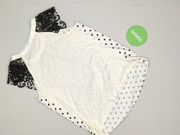 Bluzka damska Orsay - Krój: swobodny, z krótkim rękawem typu cap i okrągłym dekoltem - Kolor: biały - Przód: ażurowa koronkowa siateczka z wzorem w granatowe kropki, podszyta gładkim materiałem - ...