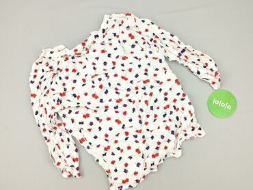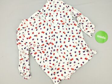 Bluzka damska z długim rękawem, rozmiar 38. - Kolor: biały z czarno‑szarym, kwiatowym nadrukiem na całej powierzchni - Krój: lekko luźny, zaokrąglony dół, tył nieco dłuższy - Dekolt: w serek z krót...