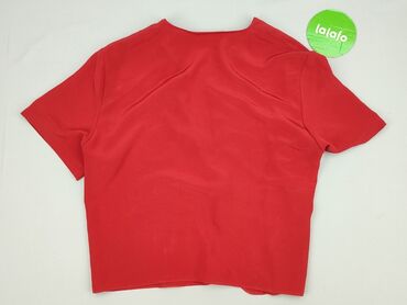 Czerwona bluzka damska z dekoltem w kształcie litery V. - Krój: luźniejszy, skrócony rękaw typu kimono. - Dekolt z przodu i z tyłu połączony efektowną, wąską listwą. - Ozdobne paseczki przy rami...