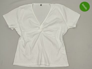 Biała damska bluzka z lekkiej, półprzezroczystej tkaniny (styl szyfonowy). - Fason: luźny, prosty krój typu boxy, bez klasycznych rękawów (opadające ramiona). - Dekolt: okrągły. - Zapięcie: z...