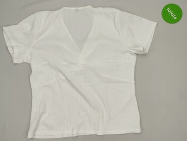 Biała bluzka damska z wiskozy - Materiał: 100% wiskoza (Made in Italy – metka na zdjęciu) - Krój: luźny, nietoperzowe krótkie rękawy - Dekolt: okrągły z ozdobną, połyskującą lamówką - Tył: niewiel...