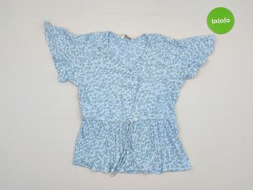 Bluzka damska BLUE, rozmiar 36. - Kolor: jasny błękit - Wzór: drobne, wielobarwne kwiaty - Fason: luźny, swobodny - Dekolt: w kształcie litery V - Rękawy: długie, z delikatnym marszczeniem - Dół i...Stan: