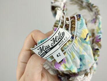 Bluzka damska Miss Millie – rozmiar M (40/42) - Materiał: 100% bawełna (cienka, przewiewna tkanina) - Kolor: biały z niebieskimi haftami - Styl: boho/etno - Dekolt: w kształcie litery V - Rękawki:...