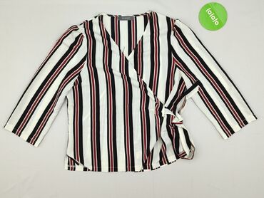 Biała bluzka damska PRIMARK - Rozmiar z metki: UK 14 / EU 42 / USA 10 - Fason: luźny, tunikowy - Dekolt: w kształcie litery V - Rękawy: 3/4 z delikatnym marszczeniem i gumką przy mankiecie - Tkani...