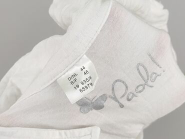 Biała bluzka damska z koronką na ramionach i plecach. - Rozmiar: XXL (widoczne na metce). - Krój: lekko luźny, z okrągłym dekoltem. - Rękawy: 3/4 z mankietem. - Materiał: cienka, przewiewna dzi...