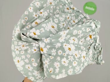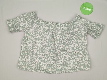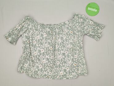 Damska bluzka w kwiaty - Krój: luźny, lekko wydłużony tył, dekolt w kształcie V - Rękaw: krótki, opadający (kimono/cap sleeves) - Wzór: drobne białe kwiaty na pastelowo-zielonym tle - Materiał: ci...