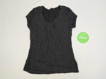 Czarna bluzka z aksamitnym korpusem i bufiastymi rękawami z organzy w kropki. - Krój: klasyczny T‑shirt z okrągłym dekoltem, bufiaste krótkie rękawy. - Materiały (na metce): - część główna: 92% ...