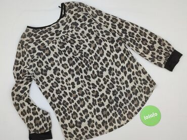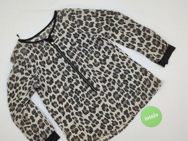 Bluzka damska z nadrukiem w panterkę - Rozmiar: L (metka) - Fason: luźny, lekko marszczony przy dekolcie - Rękaw: 3/4 - Dekolt: w kształcie litery V z drobnymi zakładkami - Wzór: panterka w odcien...