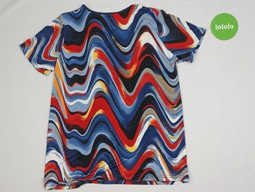 Bluzka damska H&M - Rozmiar: EU 34 (US 4, CA 4, CN 160/80A, MX 4) - Materiał: 100% poliester (lekka, zwiewna tkanina) - Kolor/Wzór: abstrakcyjny nadruk w odcieniach żółtego, granatu, turkusu i beż...