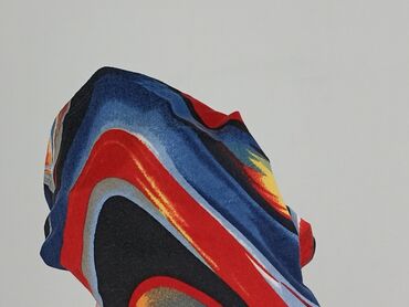 Damska bluzka z krótkim rękawem, wykonana z poliestru, z wzorem w geometryczne bloki kolorów. Charakteryzuje się szerokim dekoltem, który może być noszony na ramionach. Rękawy są zakończone wiązani...