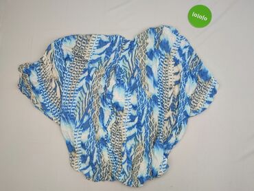 Zwiewna bluzka damska w kolorze jasnego błękitu. - Krój typu poncho/cape – luźny, z szerokimi, opadającymi rękawami i asymetrycznymi krawędziami - Okrągły dekolt - Delikatny, półtransparentny mate...