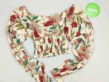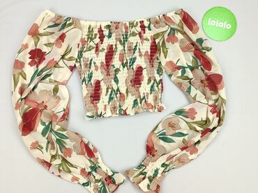 Bluzka hiszpanka w kwiaty - Krój: krótka, odsłaniająca ramiona (off-shoulder), dzięki elastycznej gumce wokół dekoltu i dołu można nosić ją prosto lub lekko opuszczoną. - Rękawy: długie, lekko buf...Stan: