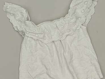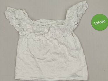 Biała bluzka damska House, rozmiar M. - Fason z odkrytymi ramionami (cold shoulder) - Falbana z przodu - Okrągły dekolt - Zapięcie na guziki z tyłu na całej długości - Krótkie rękawki z marszczenie...