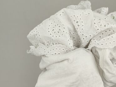 Biała bluzka hiszpanka dla dziewczynki - Krój: odkryte ramiona (hiszpanka) z szeroką, efektowną falbaną. - Detale: ażurowa falbana z haftem angielskim i wycięciami; elastyczna gumka wokół dekoltu ...Stan: