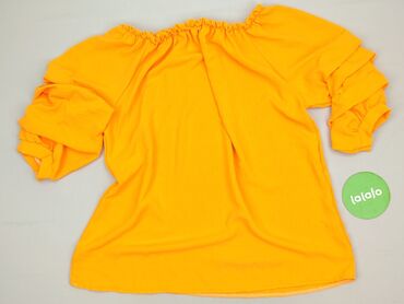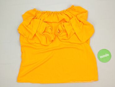 Bluzka damska WOMEN, rozmiar S - Kolor: intensywny musztardowo‑żółty - Krój: luźny, swobodny, z szerokim dekoltem na gumce (można nosić klasycznie lub opuszczoną na ramiona) - Rękawy: krótkie, lek...