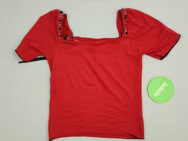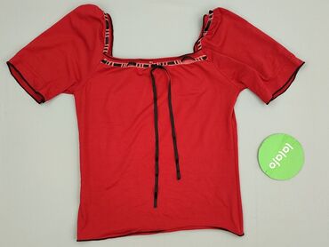 Czerwona bluzka damska z krótkim rękawem - Fason: luźny, z elastyczną gumką w dekolcie i u dołu (można nosić prosto lub lekko opuszczoną na ramiona) - Dekolt: szeroki, marszczony - Rękawy: krótkie...