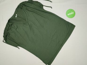 Bluzka damska BEL0VED Woman, rozmiar L. - Kolor: oliwkowa zieleń - Krój: luźny, z dekoltem w serek - Rękawy: krótkie z marszczeniem na ramionach i troczkami do regulacji - Materiał: elastyczna, pr...