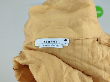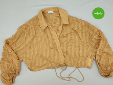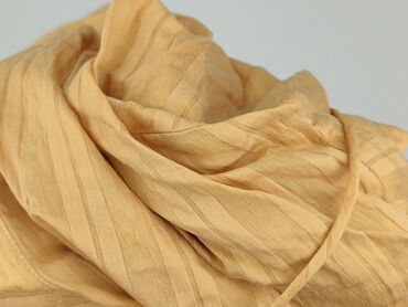 Bluzka damska w kolorze musztardowym ze wzorem w paski. Charakteryzuje się szerokimi, luźnymi rękawami typu nietoperz, które zwężają się przy nadgarstkach. Dekolt jest szeroki i łódkowy, co dodaje ...