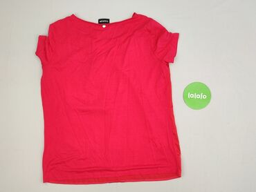 Bluzka damska TAIFUN - Krój: lekko luźny, prosty, z krótkim rękawem typu cap. - Dekolt: okrągły. - Zapięcie: małe zapięcie na guzik z tyłu przy karku (pętelka). - Wzór: intensywnie czerwone tło w ...