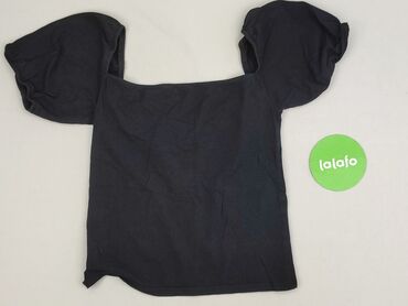 Czarna bluzka damska Terranova, rozmiar S. - Fason z krótkim rękawkiem - Okrągły dekolt - Doszyta baskinka podkreślająca talię - Elastyczna, miękka dzianina (skład metki niewidoczny na zdjęciu) - ...