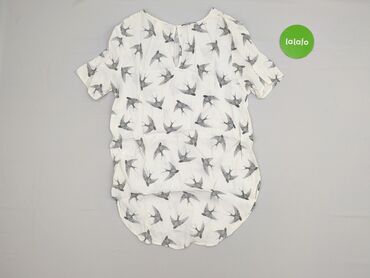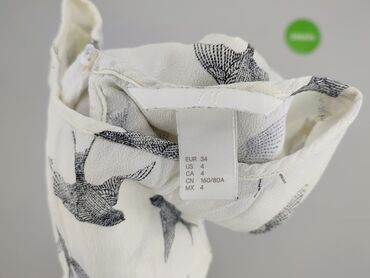 Bluzka H&M, rozmiar XS (EUR/UK XS, CN 160/80A). - Materiał: 100% wiskoza (informacja z metki). - Kolorystyka: ecru/kremowa baza z dużym, czarnym, kwiatowym nadrukiem. - Krój: luźniejszy, lekko krót...