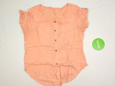 Bluzka damska WOMEN, rozmiar M - Kolor: jasny brzoskwiniowy/łososiowy - Krój: luźny, lekko wydłużony dół - Dekolt: w kształcie litery V z delikatną falbanką przy obszyciu - Rękawy: krótkie, z mars...