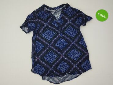 Bluzka damska Janina z krótkim rękawem - Krój: luźny, z elastycznym dekoltem typu hiszpanka (można nosić na ramionach lub opuszczoną). Dół również na gumce. - Wzór: geometryczny, niebieskie romby ...