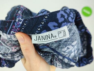 Bluzka damska Janina - Rozmiar z metki: EU 38 (IT 42, FR 40) - Materiał: 100% wiskoza (miękka, przewiewna tkanina) - Wzór: drobny, roślinno-ornamentowy w odcieniach granatu, bieli i błękitu - Krój...