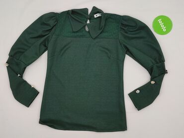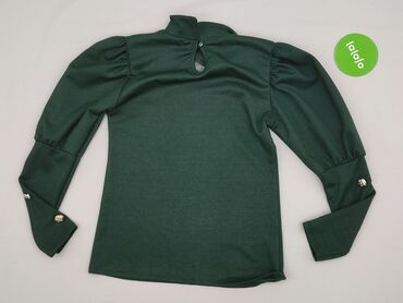 Damska bluzka LAB Consultrc, rozmiar M. - Kolor: ciemna butelkowa zieleń - Fason: krótka (crop), z dekoltem w serek - Zapięcie: rząd kontrastowych guzików z przodu - Rękawy: długie, lekko marszczon...